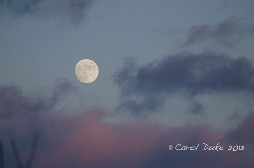 Rising up from swirling surf of clouds, following the setting sun, the ‘Long Nights Moon’ sails across the painted pastel sky.