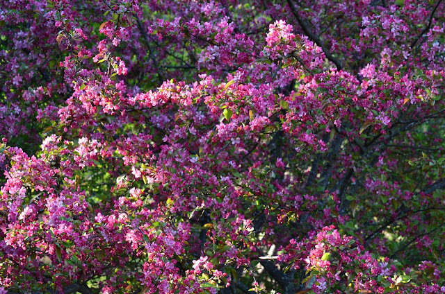Crabapples in bloom delight both the gardeners and wildlife.