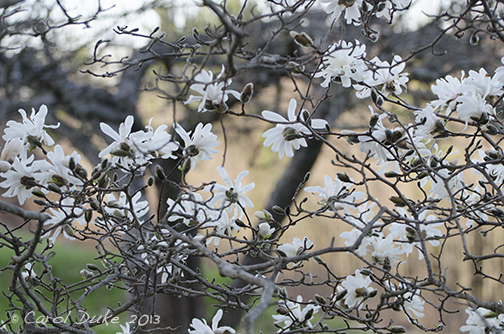 When the Magnolia stellata is fully blown open . . . other buds begin bursting too.
