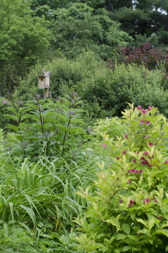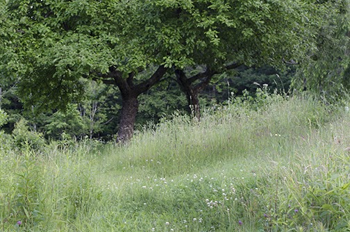 Walking down into the Lower Garden seeing the apple trees and grasses rebounding there are many birds coming and going from the blueberry fields. Just today I saw a near head-on collision . . . there is so much excitement over the bumper crop of berries.