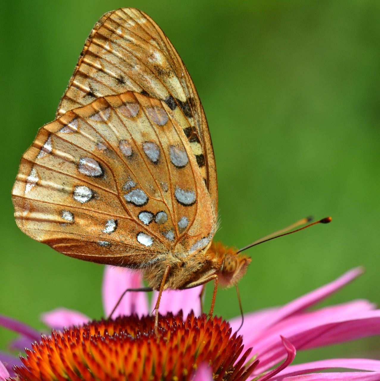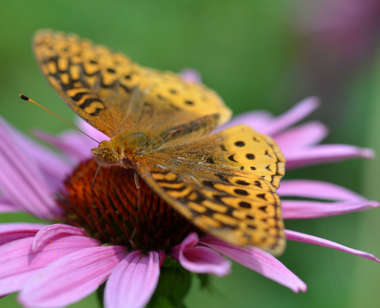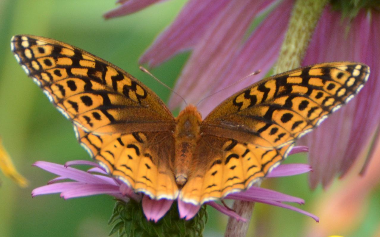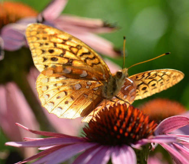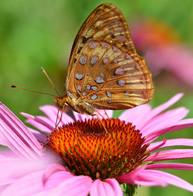 Echinacea is a favored flower for these Aphrodite Fritillary Speyeria aphrodite, ‘NOT’ butterflies.