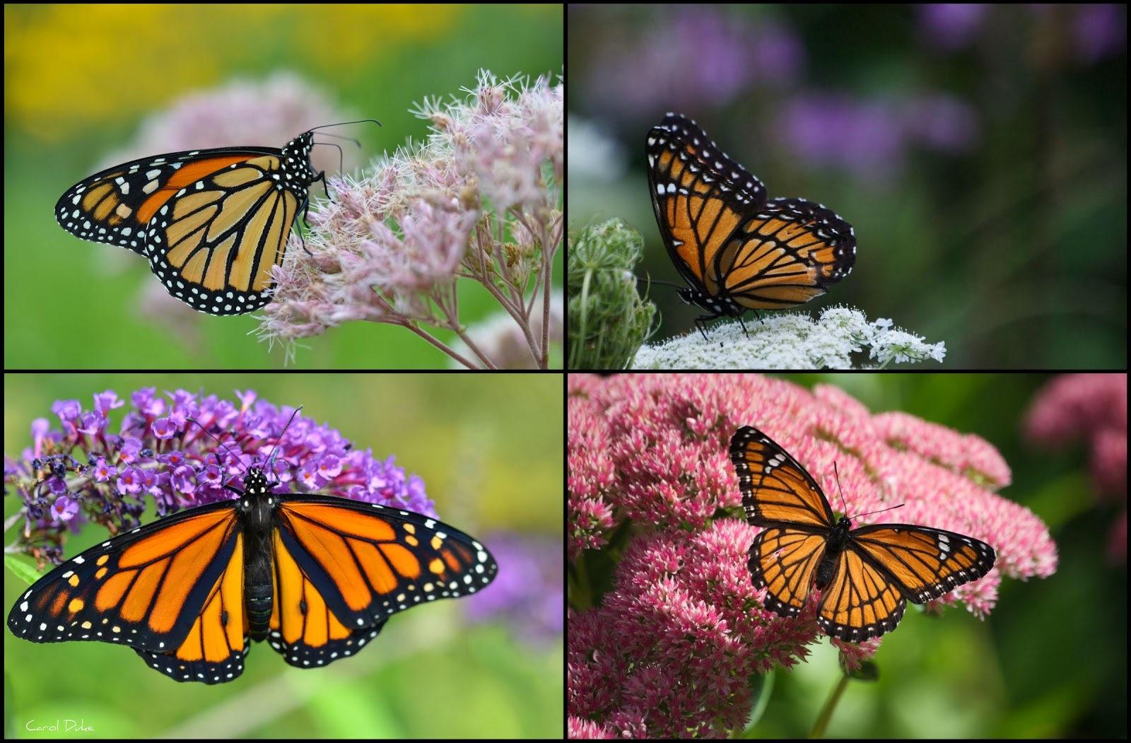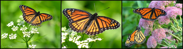 When spotting these beautiful butterflies further out in the gardens and fields, it is harder to determine the differences. One sure way to know a monarch from a viceroy . . . even faraway . . . is in the unique and graceful soaring flight of the monarch.