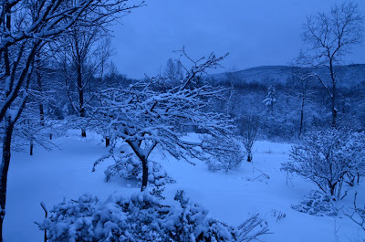 The soft bluish landscapes above were taken just at dusk on Thursday.