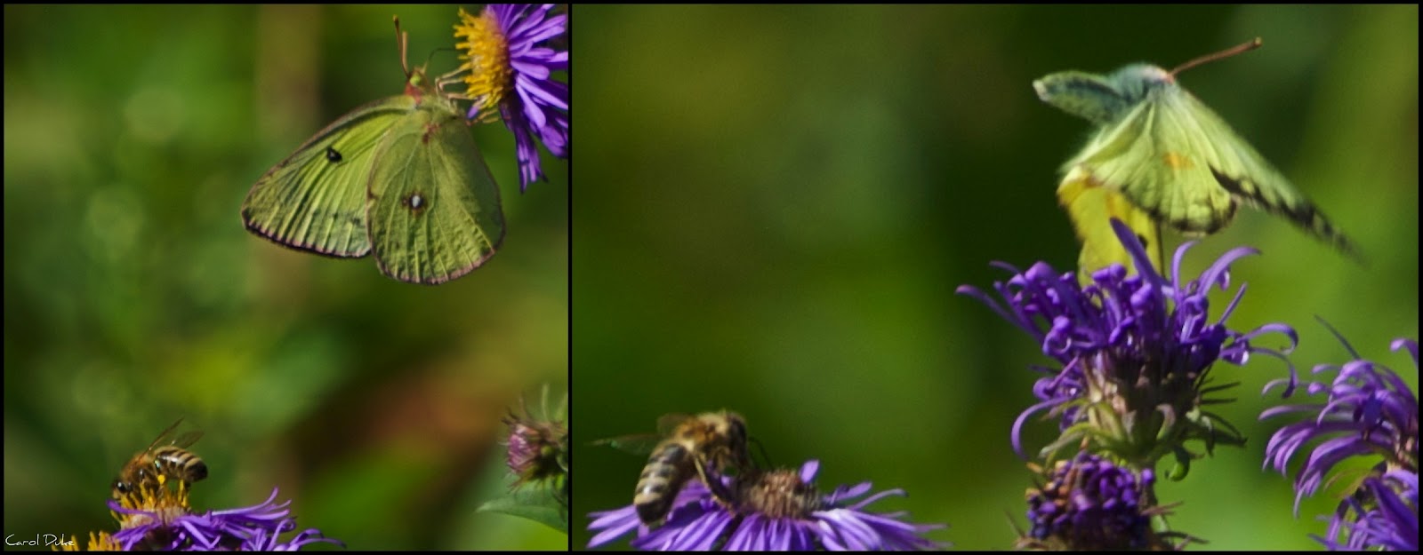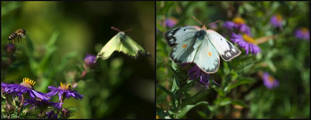 Clouded Sulphurs flutter though these images of the south field . . . full of New England Asters.