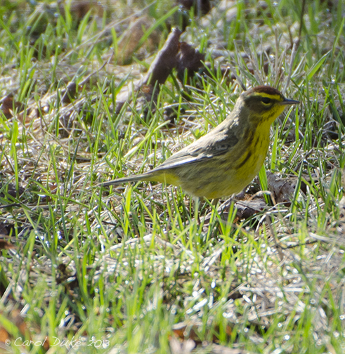 My first 2013 sighting, just this morning, of a Palm Warbler Dendroica palmarum. I notice at once that this little guy is busy scurrying along the ground looking for those tiny morsels of caterpillar and chrysalis like the robins, turkeys and bluebirds. I am so amazed any butterflies ever make it to fly in our gardens and fields.