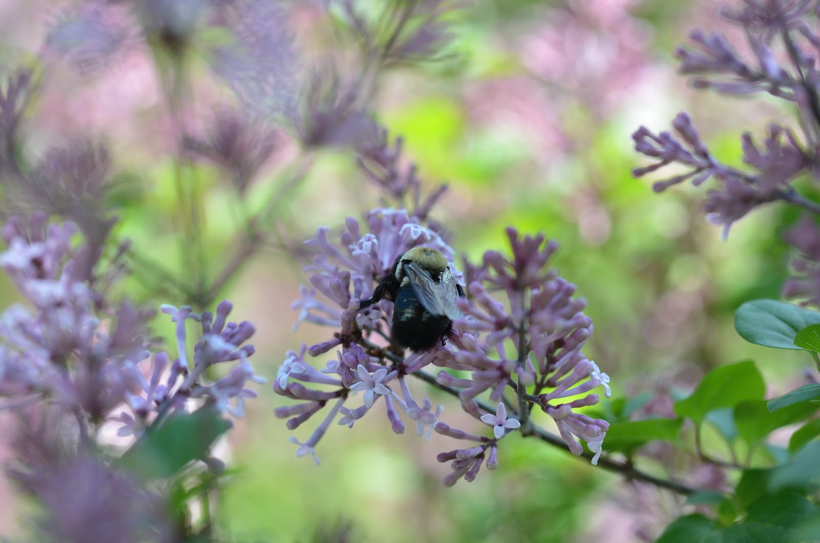 The dwarf lilacs are now having their show and pollinators are enjoying their bounty of nectar.