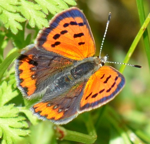 I love and revere all the many trees and plants here at Flower Hill Farm . . . but OH, when wildlife call the gardens, fields and forest home I get very excited to discover who lives so nearby and REALLY happy to make new acquaintances. This TINY American Copper Lycaena phlaeas americana, looks very fresh and would sit still . . . in the south field . . . long enough for me to capture a few portraits. What a precious vibrant butterfly!!