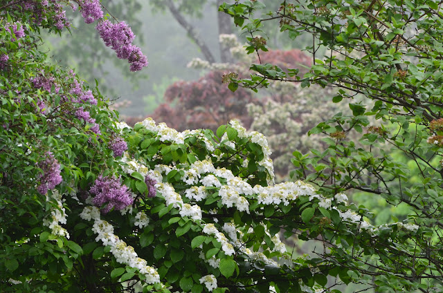 Late Viburnums, Wisteria and Korean Lilacs take center stage.