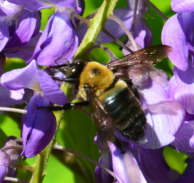 Wisteria chimes dangle their tempting panicles of blooms.