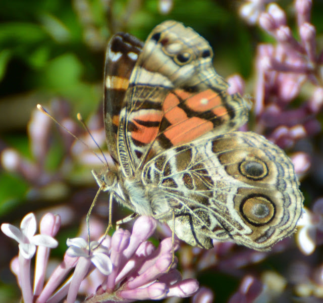 American Lady (American Painted Lady) Vanessa virginiensis, – above and below – ecstatic for the elixir of ‘Miss Kim’ lilac. I usually do not see these migrating beauties until later in the summer.