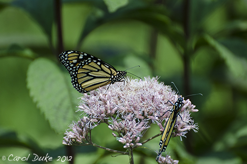 A Monarch and Painted Lady quietly feeding.