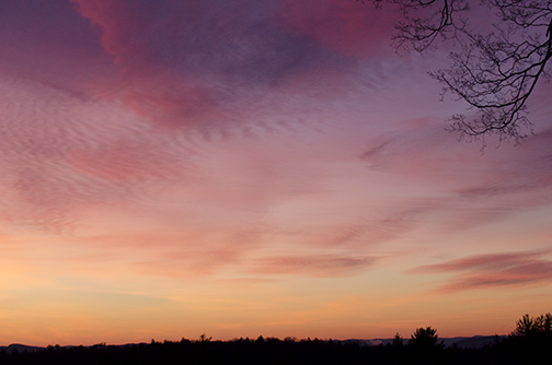 January’s frigid temperatures merging with just the right amount of moisture and ‘surface texture’ . . . I would not dare refer to smudged glass here . . . often creates crystalline forms on our simple farmhouse windowpanes, inspiring joy and awe for winter’s icy mysteries. When outdoor degrees dip into the teens, single digits and minuses, these ‘fern frost’ etchings are more likely to be viewed from within a warm but not overly warm environment. Vibrant sunrises offer a lovely back-lighting effect for observing and photographing tiny water droplets frozen into frosty leaf-like forms.