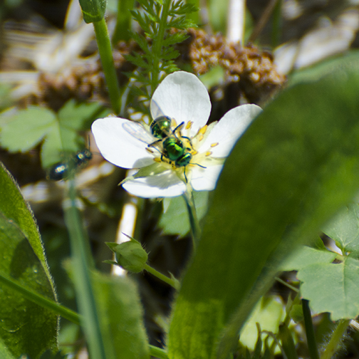 I am still learning to identify the many bees of the Apidae family I share my home and habitat with. There is a large diversity offering importance and interest to this steward. The cuckoo bee is named for its kleptoparasitic habits similar to those of the cuckoo bird. Like the bird, the cuckoo bee does not feel obliged to build a nest of her own. The cuckoo bee inserts her eggs into the nests of other bees and her hatchlings then dine on the pollen balls and even the host larva. Nature can be so cunning and cruel.