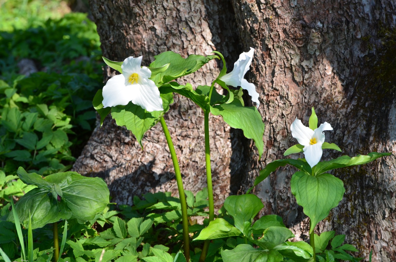 This wildflower post for Gail begins and ends with Trilliums. This grandiflorium lives happily beneath an apple tree.