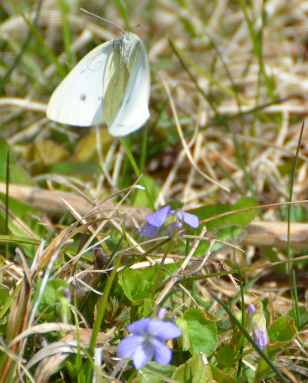 Even the Cabbage White Pieris rapae, is lively a bit earlier than usual. I hope she does not discover my tiny brassica seedlings sprouting in the veggie garden. Sweet violets are offering refreshing nectar.