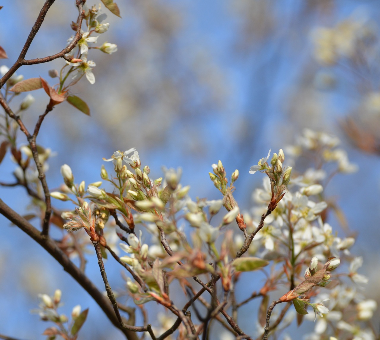Native Shadblow Serviceberry Amelanchier canadensis, blooms in the south field.