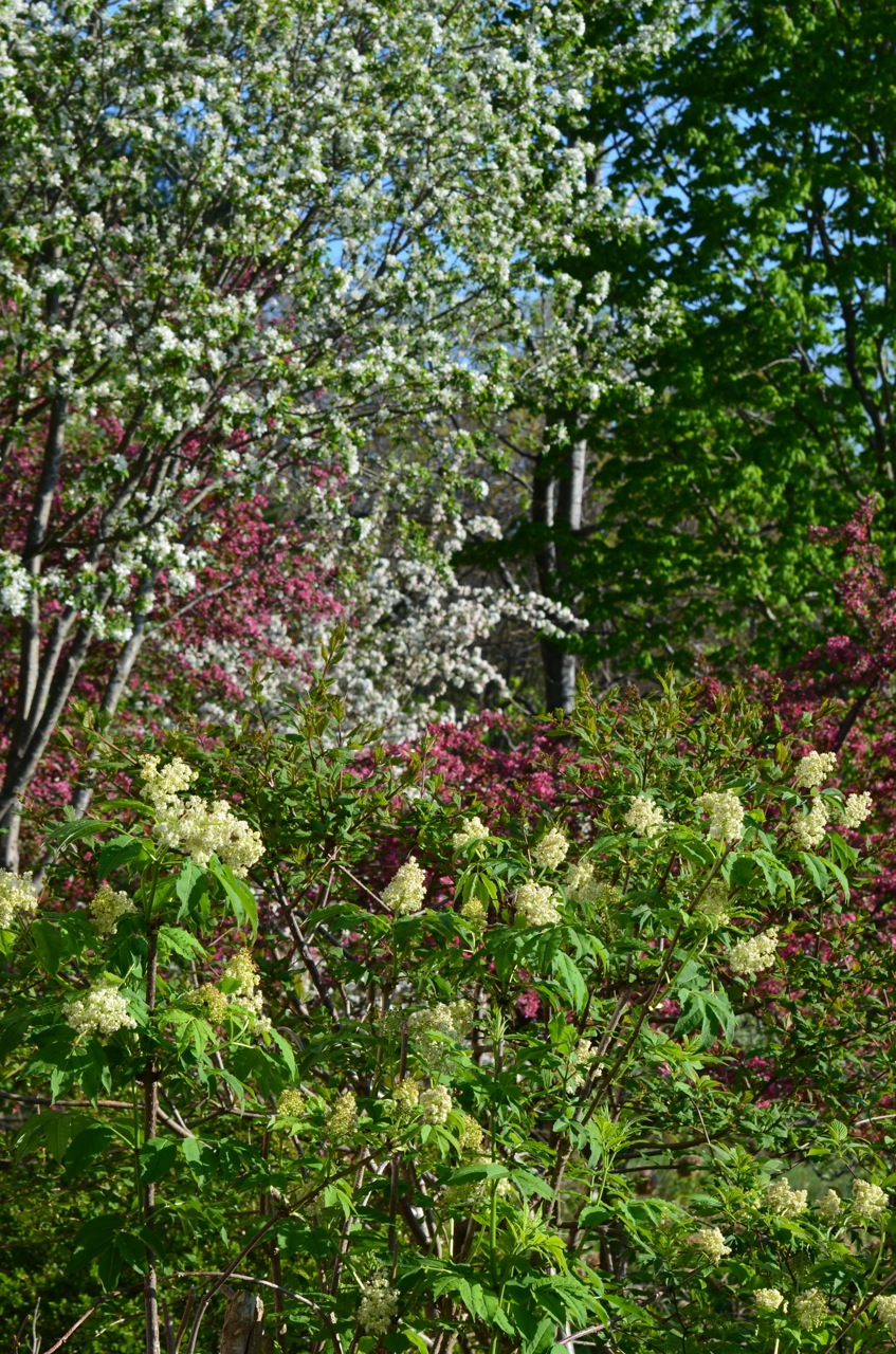 Oh, I can never look upon these seemingly harmless fronds in the same way again. These could be Ostrich fern fiddleheads but it is too soon for me to determine. They are growing in a wet area in the north field. I have never harvested my own fiddleheads but did buy some recently at our co-op and prepared them for a lovely outdoor luncheon. Well, BEWARE (see link just above in this paragraph – I wish I had) . . . you must boil these for at least ten minutes and then sauté them. I did not know or remember this and paid a huge price for my ignorance. Luckily my dear friend J. did not taste any tainted coils.