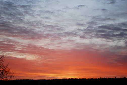 Sunrise at our retreat is sometimes other worldly. The orb of golden or pink rises up into a painted sky. If there are clouds or mist, it is a spectacle that embraces the spirit even more for its magic and mystery. Rising with the sun and bird song surely is a blessed way to begin each day. The palette changes with the seasons. I particularly love the colors and warmth of winter’s rising sun. It is often as if the sky were on fire. And when the golden shafts of light touch the trees in the gardens, life begins to tingle again.
