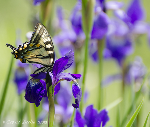 I am guessing Eastern Tiger Swallowtail but whatever the name these creatures fill the gardens and fields in numbers during the month of June delighting in wildflowers, as well as, an array of blossoms from native and non native cultivated perennials and shrubberies. Swallowtails and other butterflies are eye candy for birds and it pains me to see their tattered wings as the days unfold. Such is life for those critters lower on the food chain.