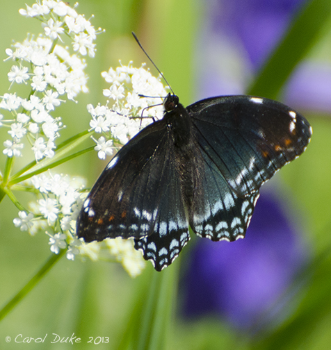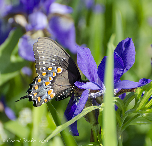 A Spicebush Swallowtail Papilio troilus visits our gardens and this is my first sighting of this species here at Flower Hill Farm. I am not aware of the host plant Spicebush Lindera benzoin, growing on our land but perhaps a neighbor is cultivating it. I will be sure to add this native plant to our gardens soon.