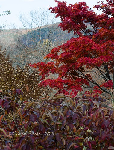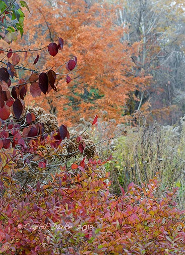 Other reds in the gardens this November are juicy spheres by the hundreds . . . apples remaining on, or below, the apple trees. We have a variety of Malus senior citizens about the gardens and are thankful to those who planted the ever giving trees, one at least, over a century ago.